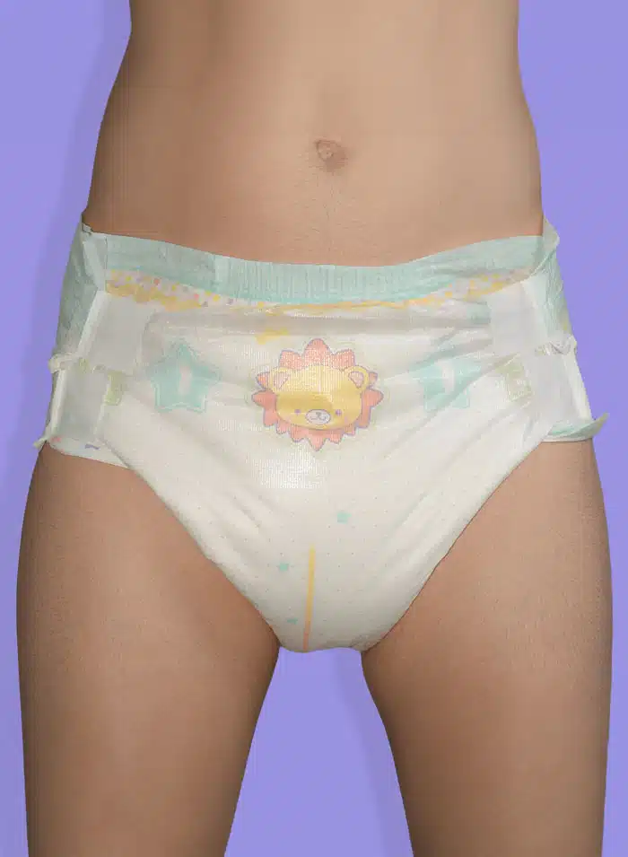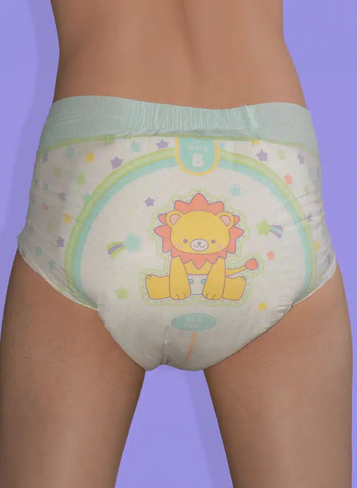 What makes Little Kings the leader of its pride? Aside from its soft, cloth-like backing, four hook & loop tapes, quick-absorb core & amazing 7500ml absorbency; Little Kings features new Positional Printed Backsheets! Until now, the standard for making ABDL patterns on diapers has been a printed tape panel or repeating backsheet. With Positional Printed diapers, ABU can print what they want, where they want; turning the diaper into a canvas ready to design from top to bottom! It’s a small detail that makes a big difference; opening up a whole new world of opportunity with diaper designs.