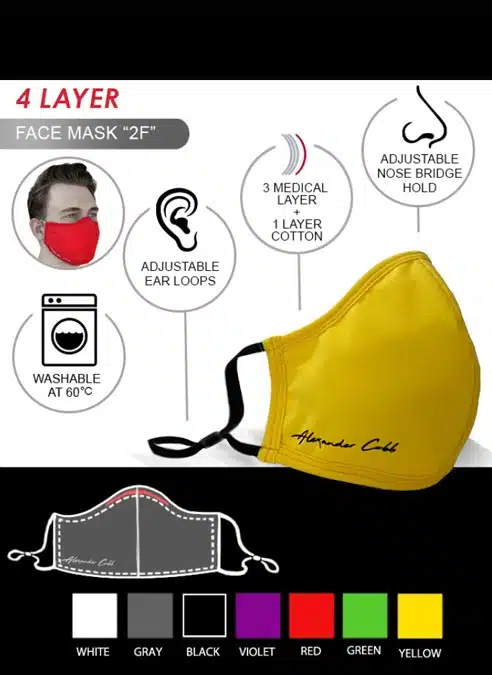 These 4 layer facemasks are shaped to fit the face and adjustable nose bridge hold for a good fit around the nose. It is made up from 3 layers of medical canvas and a cotton outer layer. The ear loops are adjustable for a comfortable fit.