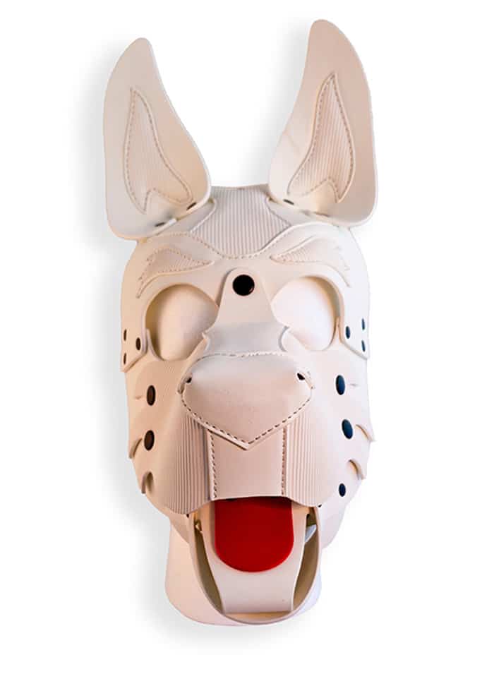 The world shifts through the open muzzle, senses sharpening. Every sound — a whispered command, the creak of leather — electrifies your skin. Your lips, exposed, crave contact, yearning to nip or taste whatever you offer. The hood’s vegan leather, soft as sin, brushes your jaw, a constant reminder of surrender. you’re no longer just you; you’re his, a pup bound by desire, eager to please.