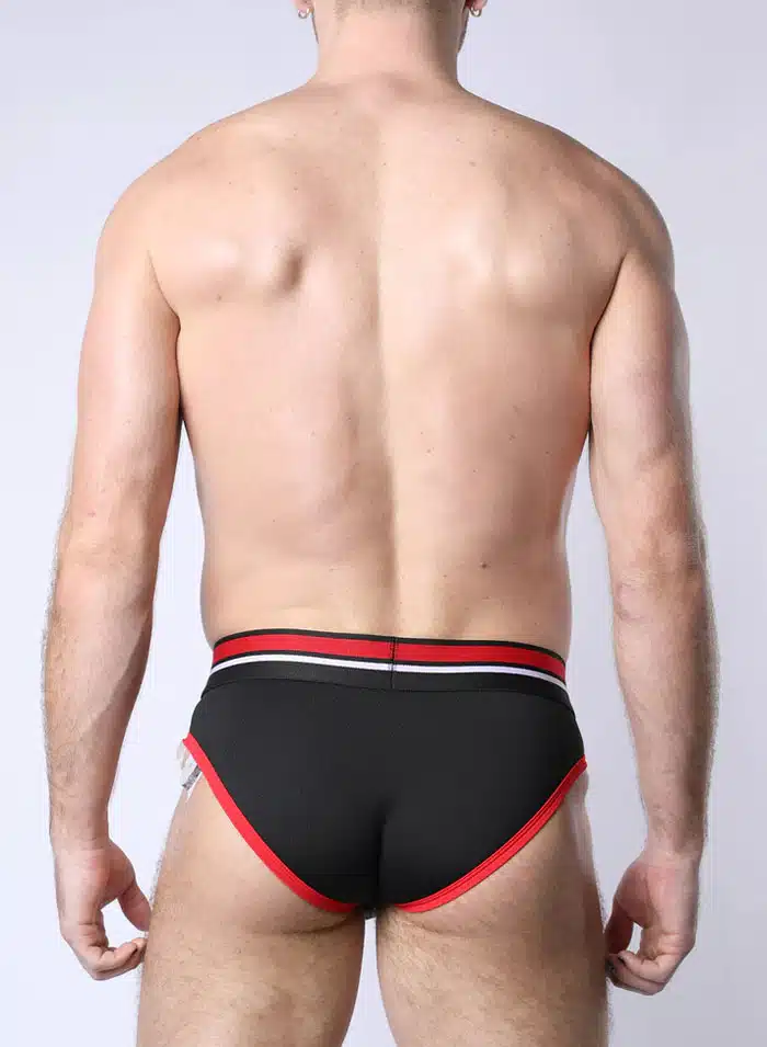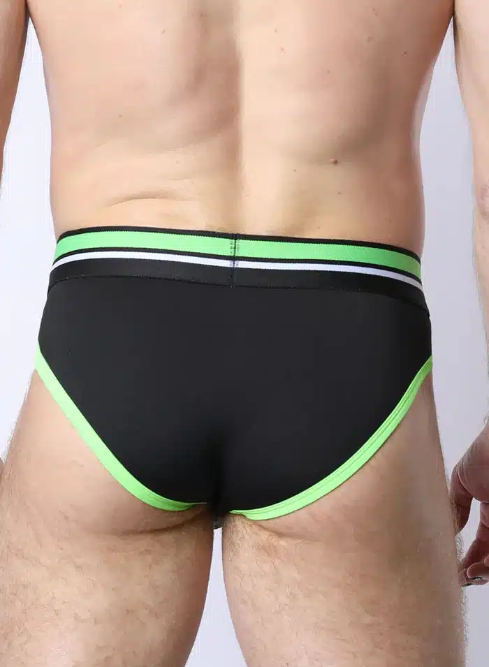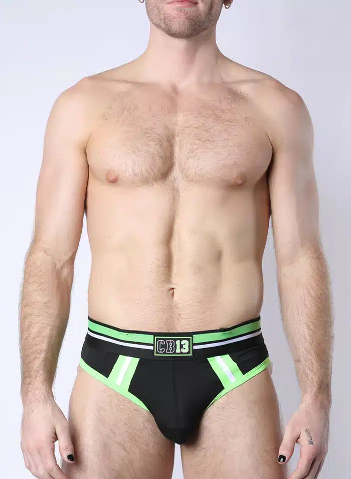 This low-rise classic brief is designed with a sporty and lightweight poly/spandex blend that promotes breathability and moisture-wicking to keep you comfortable even at your sweatiest. Pair it with the coordinating T-shirt or harness for a complete stylish look. Plus, metal rings inside the waistband allow you to attach the PUP TRON harness for a complete look. It glows in blacklight!