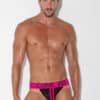 Low cut jockstrap made of the finest sport mesh fabric. Push-up pouch and Super soft elastic waistband with contrast front stripes.