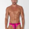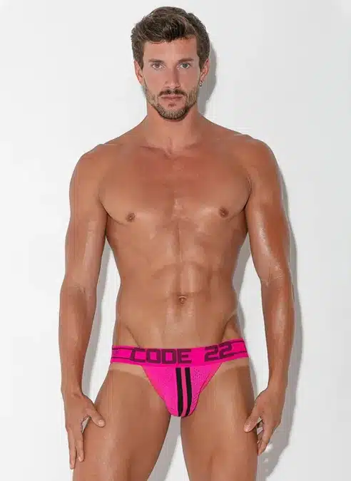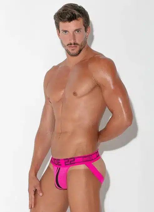 Low cut jockstrap made of the finest sport mesh fabric. Push-up pouch and Super soft elastic waistband with contrast front stripes.