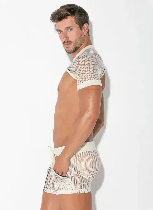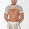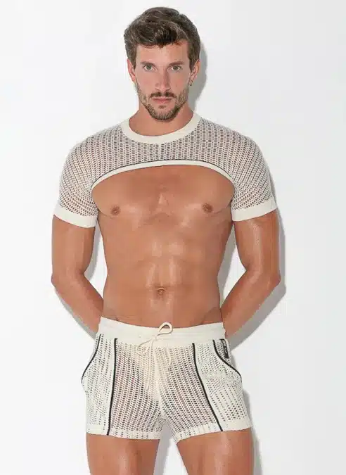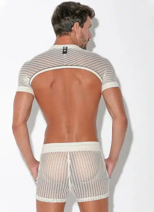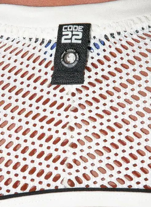 Sleeve top made of the finest openwork jacquard fabric. Wide band finishing on sleeves for a perfect fit around the arms. Contrast piping details around the hem and high frequency logo tab on the back.