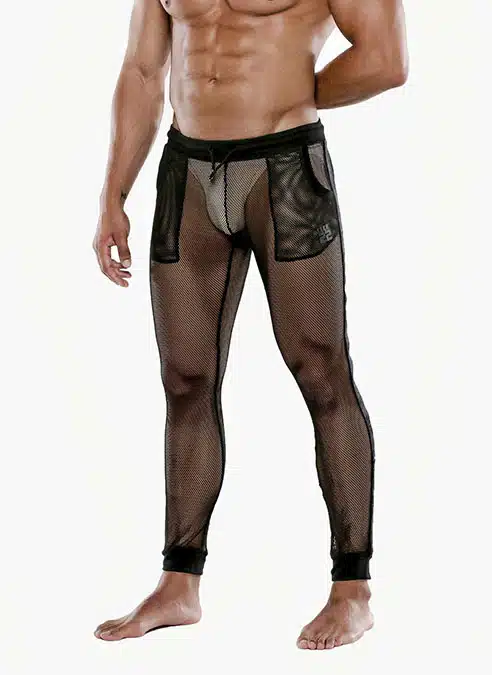 Slim fit mesh jogger with deep front pockets. CODE 22 logo tape on sides and a high frequency logo on the thigh. Ribbed finishing on waist and cuffs.