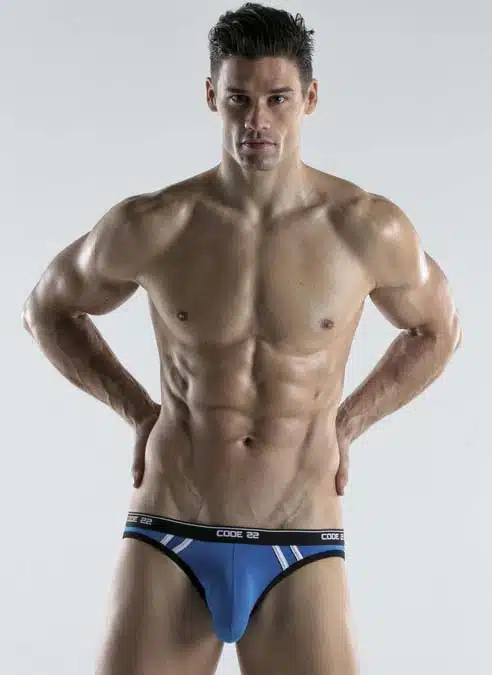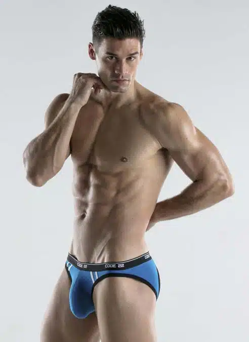 Low cut bottomless mini-brief made of the finest modal/cotton/elastane fabric. White stripe details on front and thin waistband with CODE 22 repeated logo