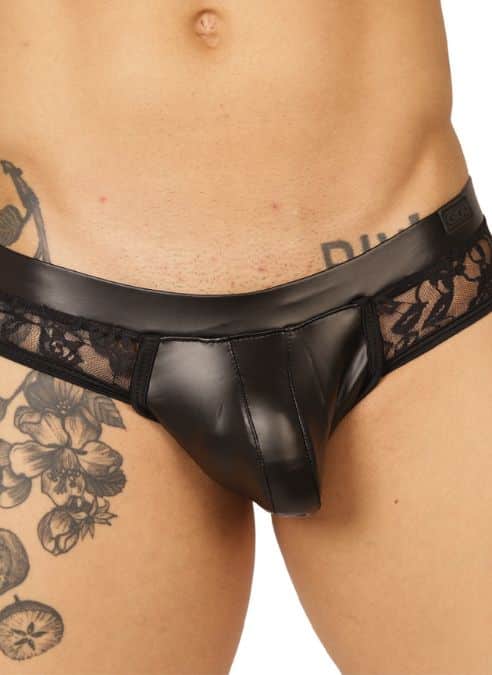 The GIGO Passione Brief is a provocative masterpiece that redefines masculine allure with its bold, sensual design. Crafted from a luxurious blend of 96% rubberized vinyl and 4% spandex, this brief molds to your body like a lover’s embrace, accentuating every contour with a form-fitting, second-skin feel. Its seductive mesh panels tease with tantalizing glimpses of skin, blending breathability with a daring aesthetic that commands attention. The lightweight, stretchy fabric caresses your skin, offering unrivaled comfort and flexibility, perfect for steamy nights or confident days.