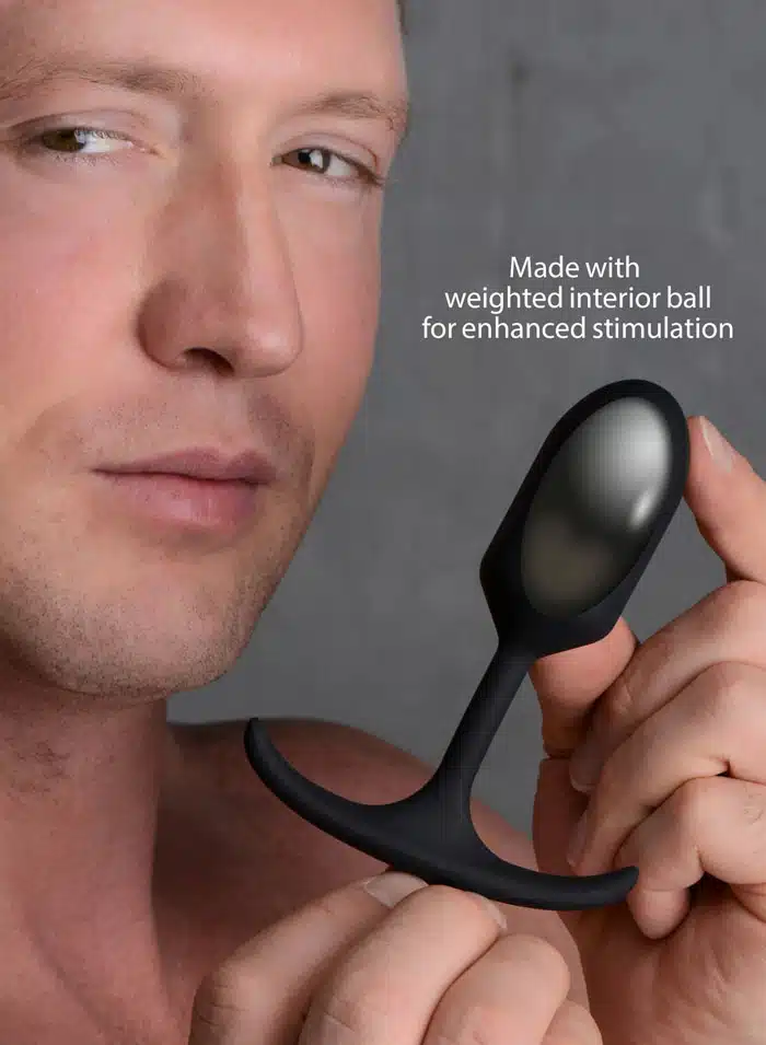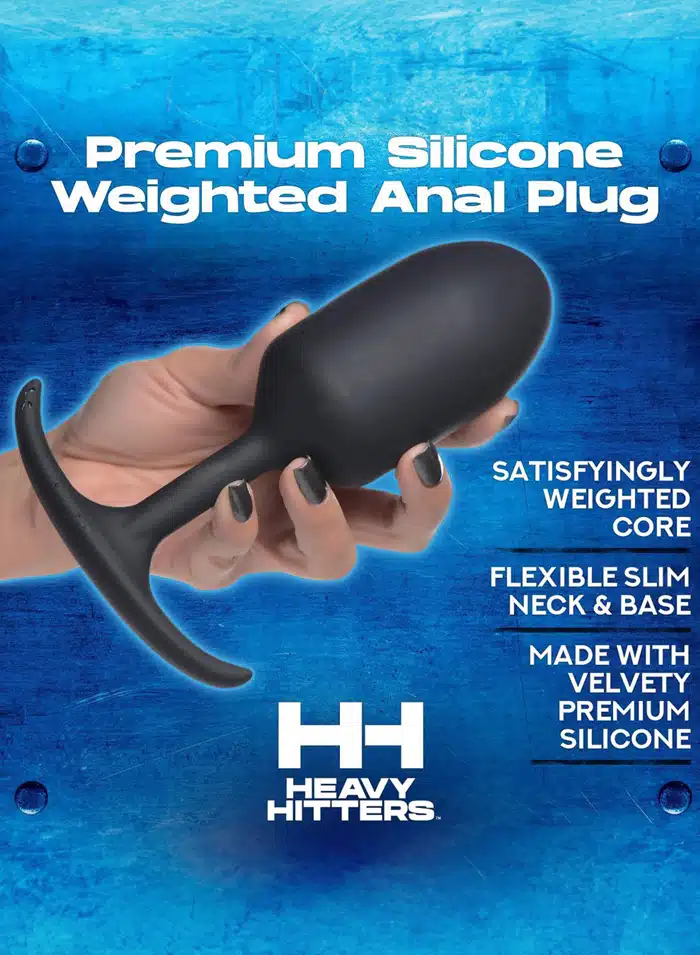 These comfortable weighted butt plugs hit hard and deep! Heavy Hitter Comfort Plugs are crafted for a fulfilling backdoor fill without the discomfort of larger toys – the round and tapered body inserts easily while the narrow neck flexible base move with your butt cheeks so you can play for extended sessions without discomfort. Made with premium, silky smooth silicone for a luxurious velvety texture your ass is gonna love! Phthalate free, non-porous, and body safe for a worry free anal experience – use with water based lubes only to prolong the life of your Heavy Hitter. Insert and feel the satisying weight of this comfy anal toy: The small but satisfying 3.3 ounce metal weight found in this Small Heavy Hitter provides a satisfying downward pull with your every movement, while also providing a solid core for you to squeeze on. Perfect for warming up the backdoor – plug your lovers booty and warm up their backdoor as you go about the home in preparation for the main anal event of the night! Measurements : Overall length 4.6 inches, bulb length 2.5 inches, neck length 1.5 inches, total insertable length 4 inches, bulb diameter 1.2 inches, base length 3.6 inches Ball Weight : 3.3 ounces Materials : Silicone and metal Color : Black