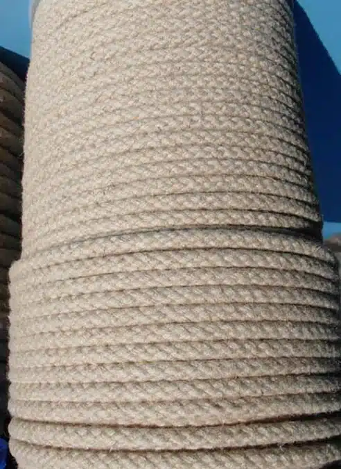 This bondage rope is made from natural and uncolored hemp that is braided into a 6 mm thick rope.
