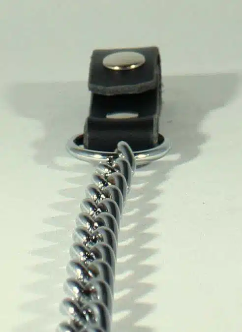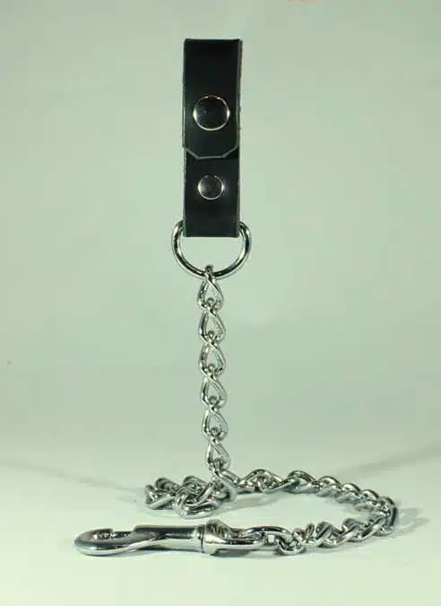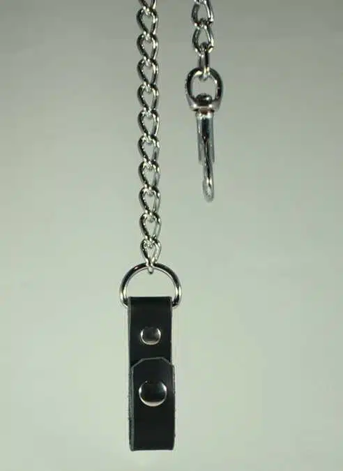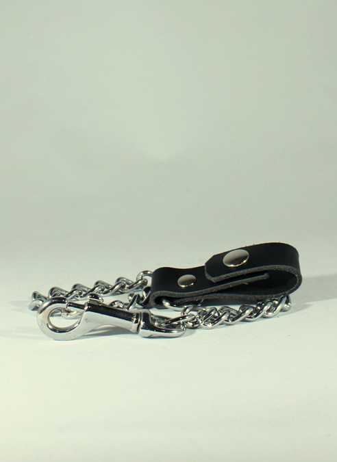 Make sure you always keep track of your wallet with this leather keyfob. It fits belts up to 45 mm wide and features a 41 cm long chain with clip.
