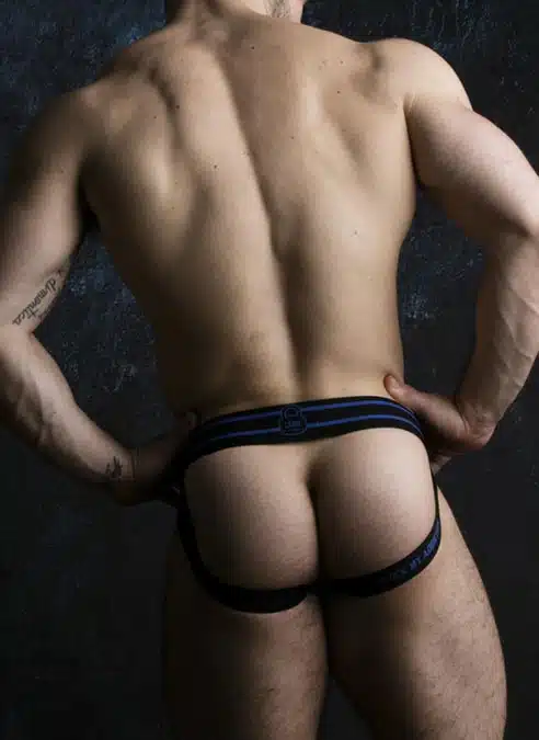 This Jockstrap gets everyones attention with the contrast colored zipper on the pouch, with such easy access to your dick, the question for you is: who gets to open it? Made from a soft mesh fabric with black vinyl accents and colored details. It is perfect for dancing or playing in the darkroom.