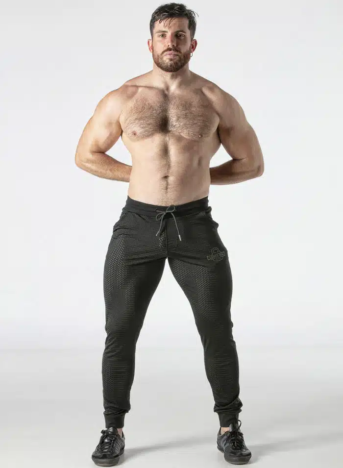 Jogger with hidden back zipper for easy access to that ass. Made of the finest breathable mesh fabric with ribbed finishing on waist and bottom and contrasting pinhole side bands. It has two front pockets and one back pocket for all your party essentials.