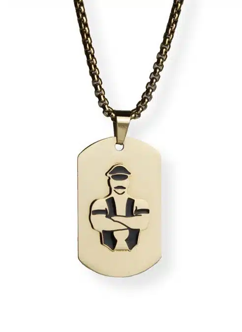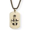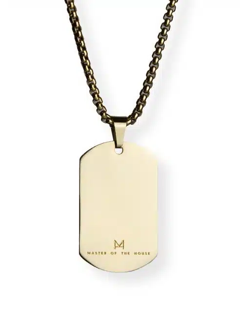 High quality, stainless steel dog tag with shiny gold plating finish and their well-known Master image, with shiny finish, welded on top.