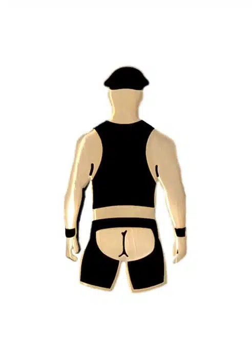 Hard enamel pin in matt black and gold.
