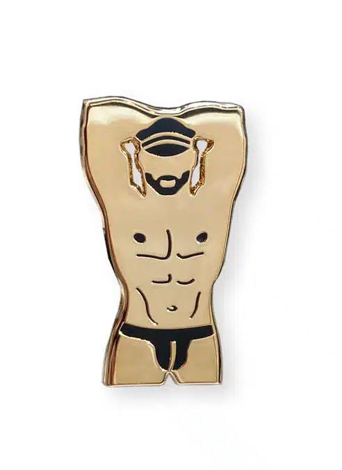 Hard enamel pin in gold tone and matte black detailing. It’s 3,5cm high and has one safety closure. All pins have branding and a unique serial number laser-engraved on the back and are crafted in limited edition. Comes with faux leather pouch for safe keeping.
