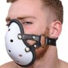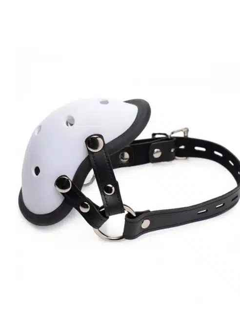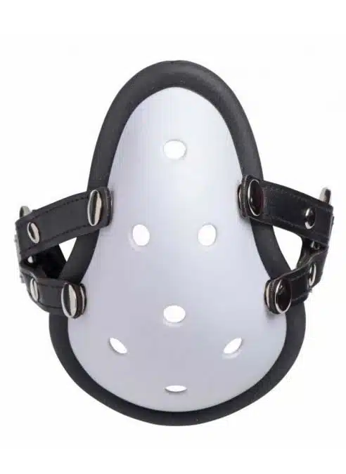 If your plaything can not get enough of the powerful smell of your sweaty groin, give them what they want by locking them into this unique and humiliating muzzle! The comfortable silicone-lined athletic cup unsnaps from the straps so that you can wear it during the game, then force your sub to inhale your scent afterwards. Overwhelm them with the pungence of a used pair of socks or underwear stuffed in the cup with their desperate face. The straps adjust to fit most and have a locking buckle so that you can lock them up with your ripe odors trapped inside! Your nasty plaything better be careful what they wish for!
