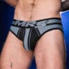 The Frontline Brief will stretch to fit every bulge and curve you stuff in it. Wrap this brief around your cakes and pair it with a pair of matching color high tops, or some sexy black leather combat boots and a leather harness. Put on your favorite chunky cock ring and get bulging at your favorite underwear party or sex club.