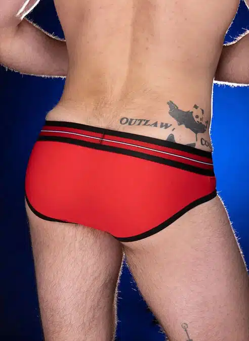 The Frontline Brief will stretch to fit every bulge and curve you stuff in it. Wrap this brief around your cakes and pair it with a pair of matching color high tops, or some sexy black leather combat boots and a leather harness. Put on your favorite chunky cock ring and get bulging at your favorite underwear party or sex club.