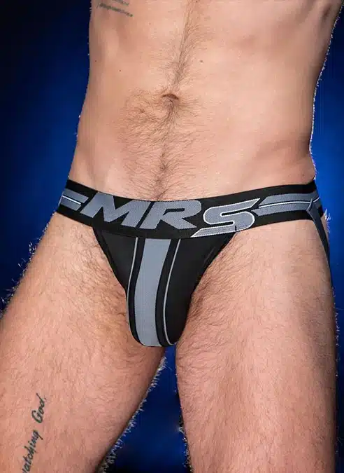 Made with a breathable Viscose/Spandex sports mesh in one of four colors, with the Mr. S Sport Logo emblazoned right under your cum gutters.