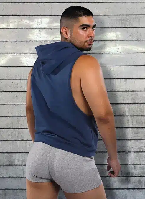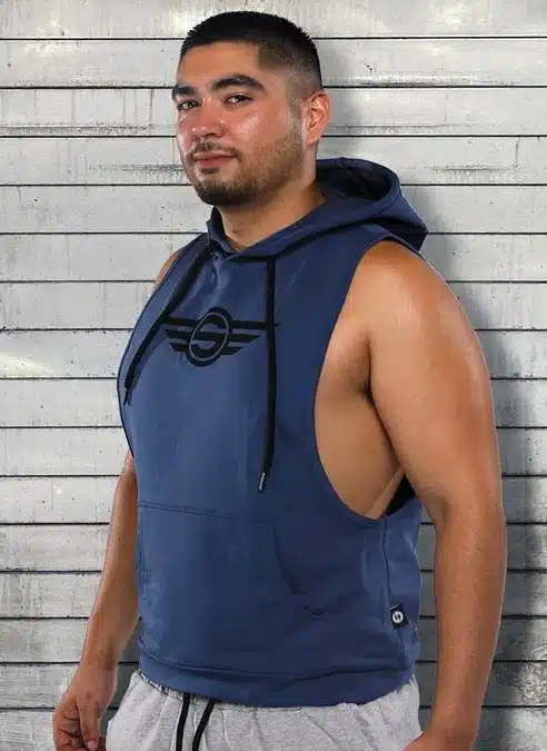 The Gym Class Sleeveless Hoodie is comfortable as fuck, and cut to show off your shoulders and arms while keeping you cool when Coach is pushing you hard and providing access to your musky pits when Coach gets hard.