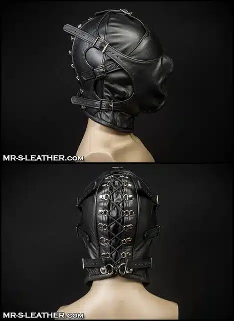 Mr. S Leather makes more than 45 styles of Leather & Rubber Hoods. Sensory Deprivation of the head is very sexy and mind fucking and one of the Mr. S signatures of Bondage gear. All their hoods are intended to isolate the body and fuck with the mind. This New Asylum Hood combines some of the best features we have used on a number of other hoods from our collection.