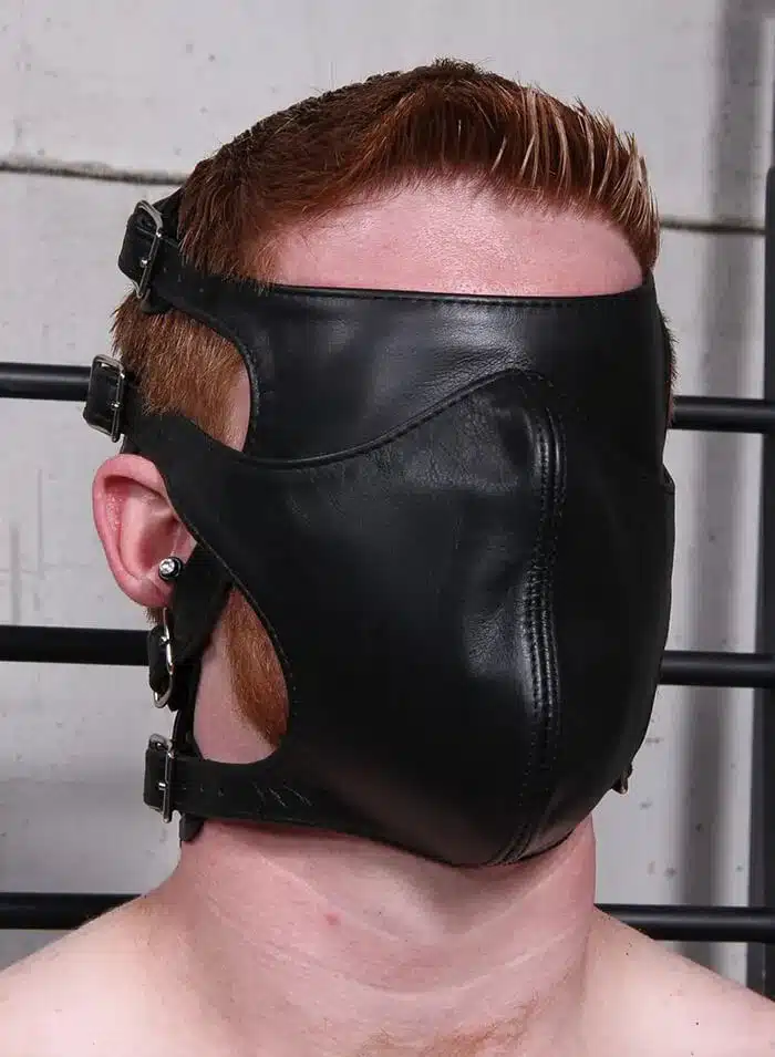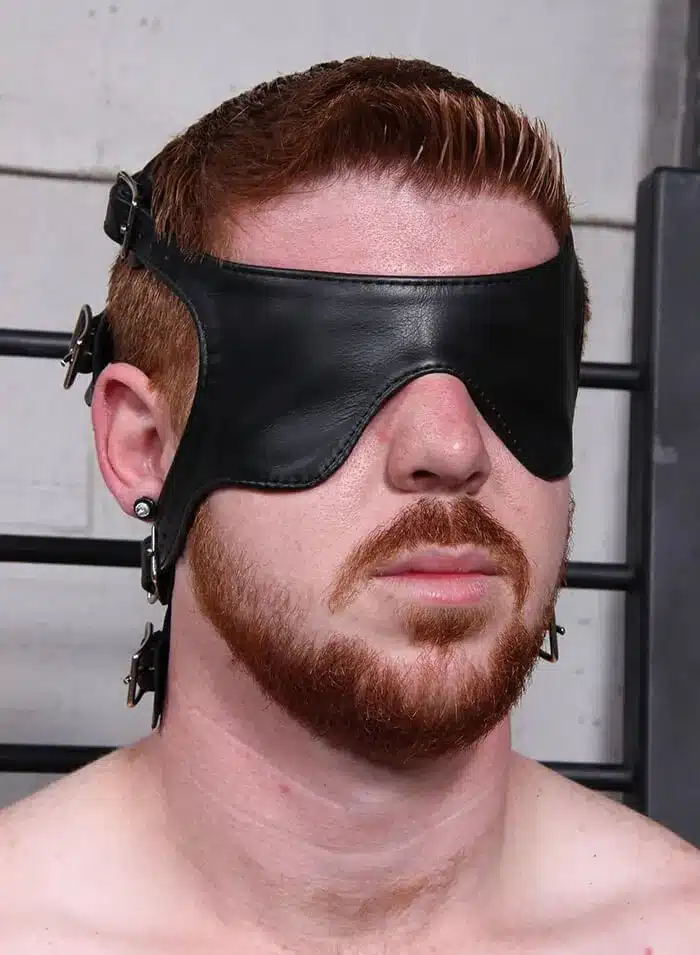 Both this muzzle and the blindfold coverings are bucked to the sides and top of the hood when you want to isolate your sub completely. When not using these two covers, you have open eyes so your sub can see what you’re going to do to them or an open mouth so they can get down and take care of your cock.