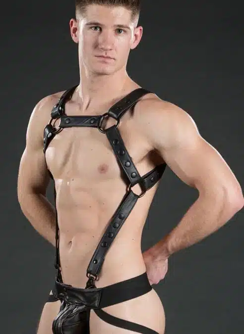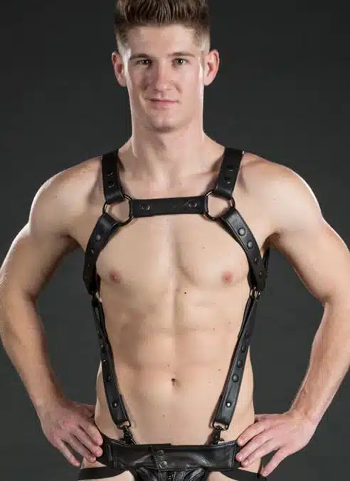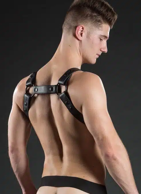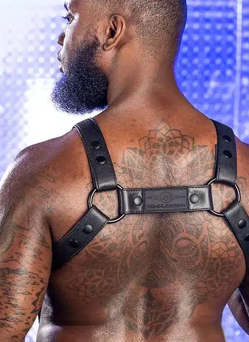 Strong, masculine and designed to make you look good. Mr. S took the hottest elements from two of their best-selling harnesses and combined them into the uber sexy Crossbow Body Harness. Now with all black hardware for a sleek look.