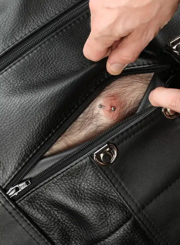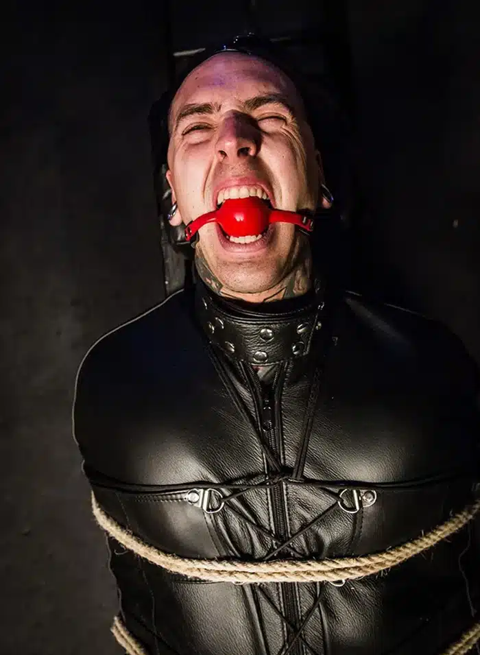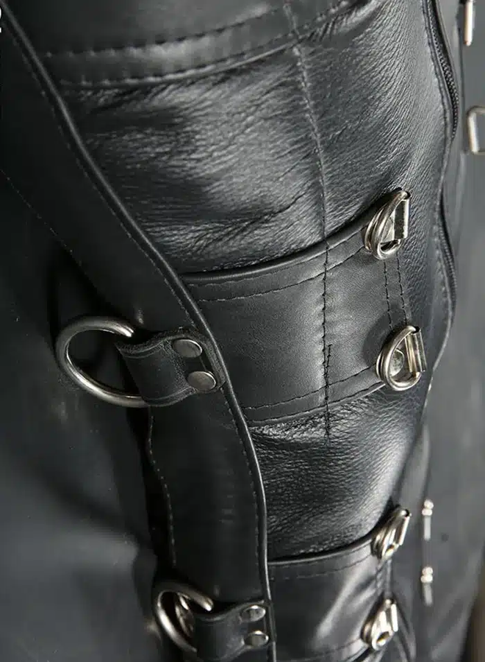 Our sleepsacks are made of the finest quality leather we can find and equipped with 24 small metal D-rings down the front which allows you to lace the sack very tightly. It can be a comfortable overnight experience, or it can be pulled so tightly that it becomes an intense bone crushing body numbing trip.