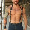 What makes these suspenders unique is you can wear them two ways. With both straps on your shoulders you get a sexy and unique take on suspenders. Pull the bottom strap under your arms you turn this piece into a harness. Whatever way you wear them, you’re going to turn heads! Made from latigo leather that will soften as you wear them. Silver hardware pops against the black leather. Trigger snaps clip to your belt loops. A sexy way to keep your pants up.