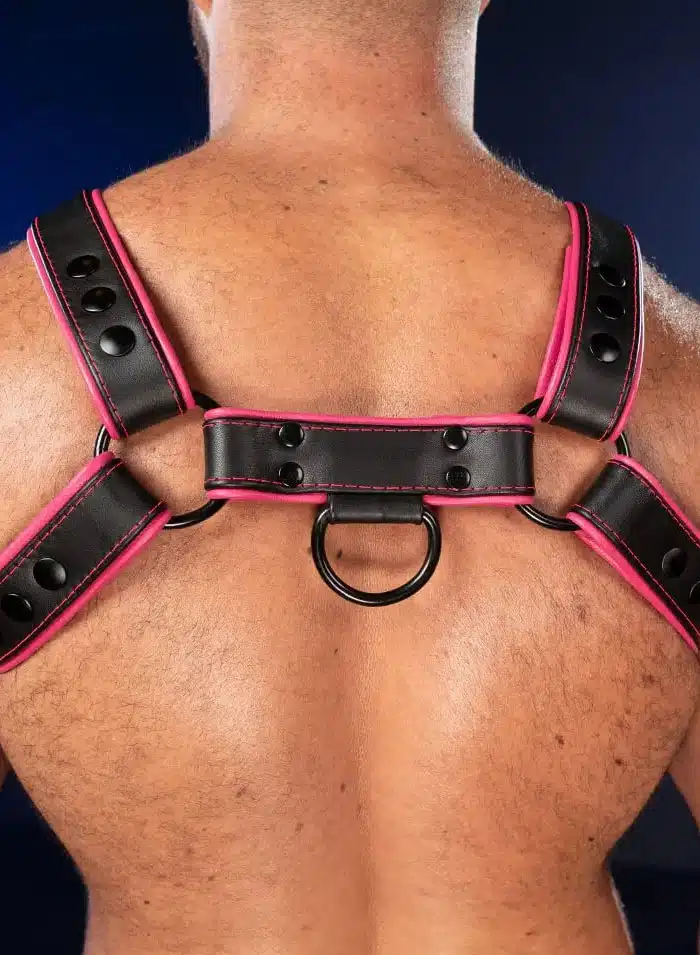 Stand out from the crowd with Mr. S Leather’s latest harness design. The Hardline Harness is built in traditional bulldog fashion, with a strong H-shape that shows off your pecs and highlights your shoulders but for this rendition, they’ve trimmed the harness in a matching color stitching to accent the bold piping that outlines the leather. Black hardware keeps things sleek without distracting from your sexy self.