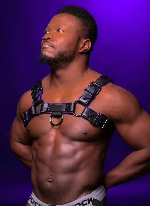 Stand out from the crowd with Mr. S Leather’s latest harness design. The Hardline Harness is built in traditional bulldog fashion, with a strong H-shape that shows off your pecs and highlights your shoulders but for this rendition, they’ve trimmed the harness in a matching color stitching to accent the bold piping that outlines the leather. Black hardware keeps things sleek without distracting from your sexy self.