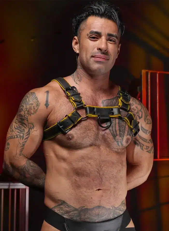 Stand out from the crowd with Mr. S Leather’s latest harness design. The Hardline Harness is built in traditional bulldog fashion, with a strong H-shape that shows off your pecs and highlights your shoulders but for this rendition, they’ve trimmed the harness in a matching color stitching to accent the bold piping that outlines the leather. Black hardware keeps things sleek without distracting from your sexy self.