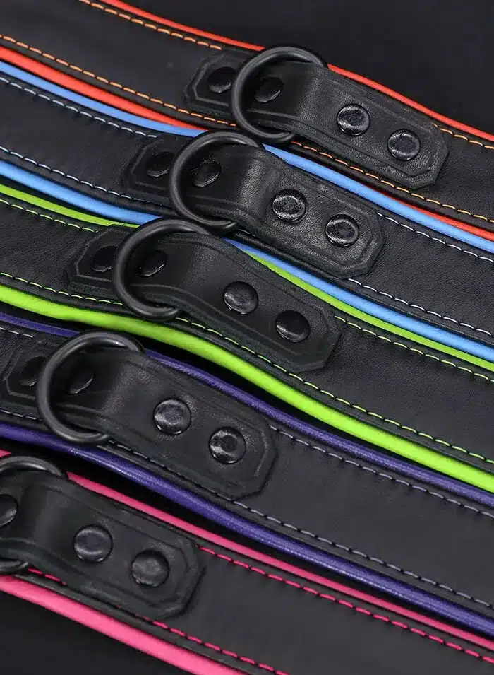 The Hardline Collar brings a fresh look the the Mr. S Leather arsenal – bold stitching with sleek black hardware and sturdy leather piped with a splash of color will make sure that the guys at the bar notice you’re wearing the best of the best.