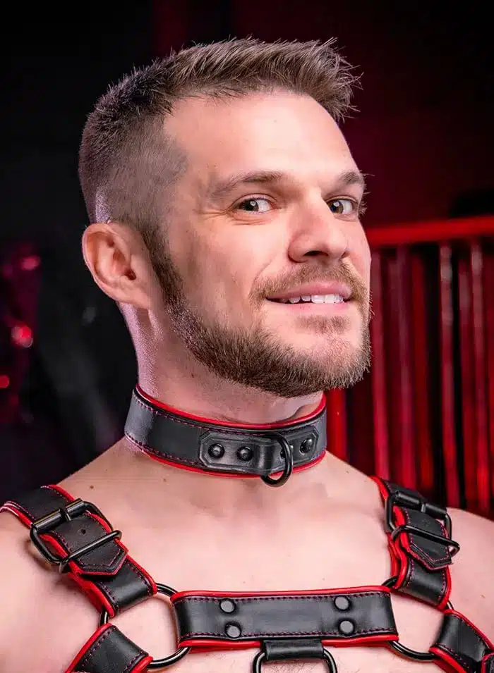 Stand out from the crowd with Mr. S Leather’s latest leather collar design. The Hardline Collar is constructed with two layers of genuine garment leather, matching-color stitching that accents the bold piping, and black hardware that keeps things sleek without distracting from your sexy self. Great for boys, pups, and service dogs alike. Clip on the Hardline Short Leash and your pup in training will always be within reach.