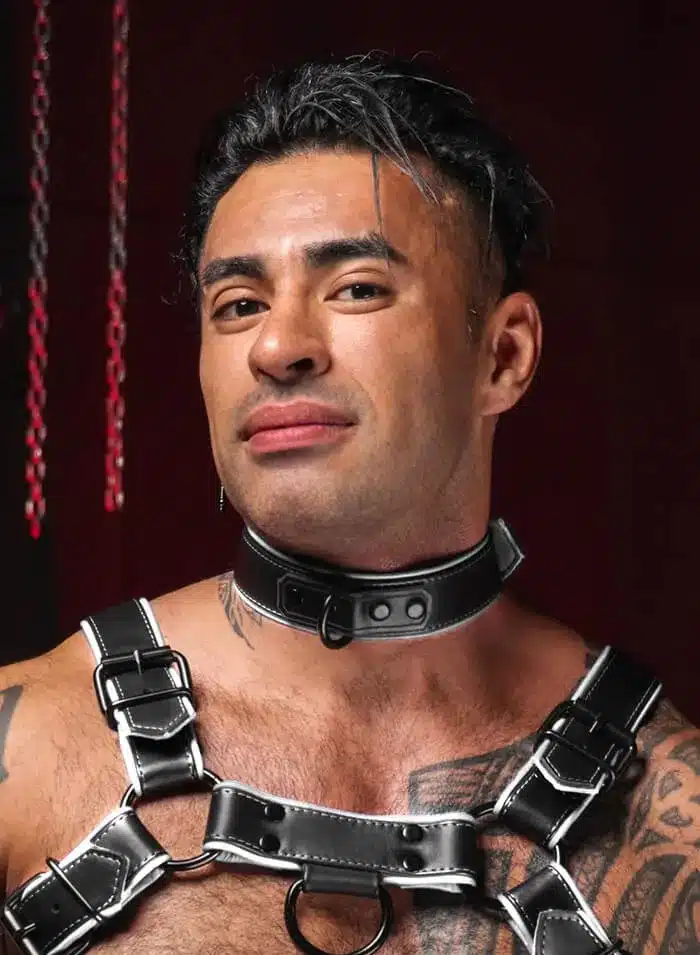 Stand out from the crowd with Mr. S Leather’s latest leather collar design. The Hardline Collar is constructed with two layers of genuine garment leather, matching-color stitching that accents the bold piping, and black hardware that keeps things sleek without distracting from your sexy self. Great for boys, pups, and service dogs alike. Clip on the Hardline Short Leash and your pup in training will always be within reach.