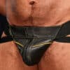 The Hardline Jockstrap brings a fresh look to the Mr. S Leather arsenal – bold stitching with sleek black hardware, and supple leather piped with a splash of color will make sure that the guys at the bar notice you’re wearing the best of the best.