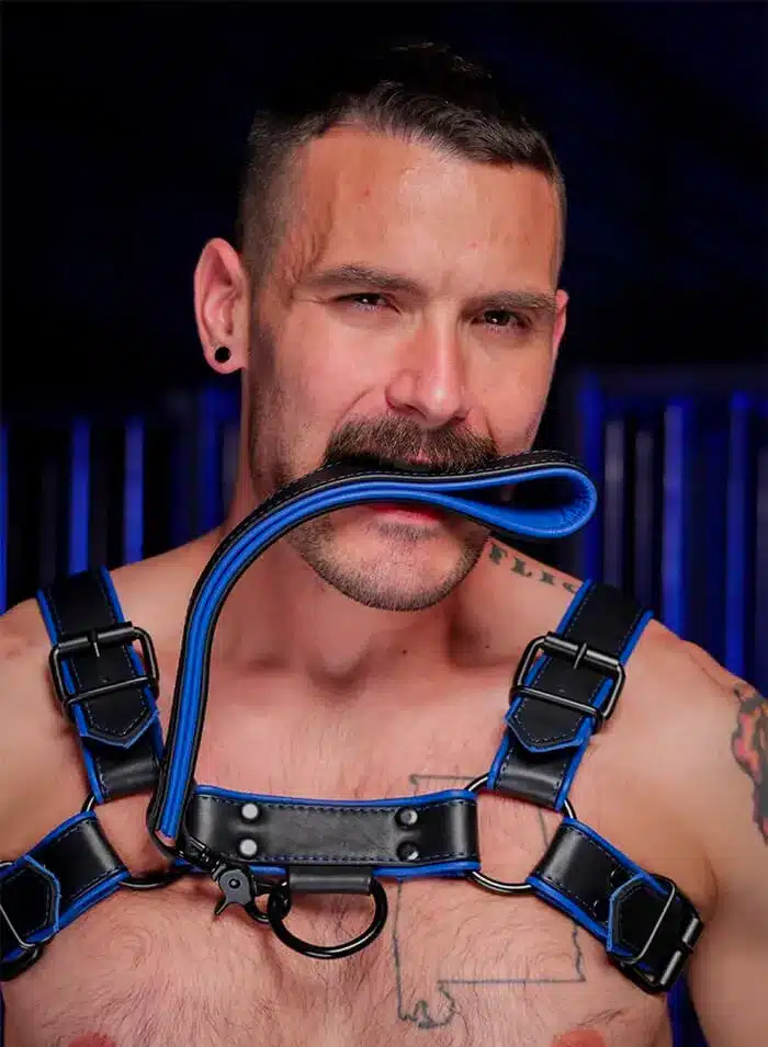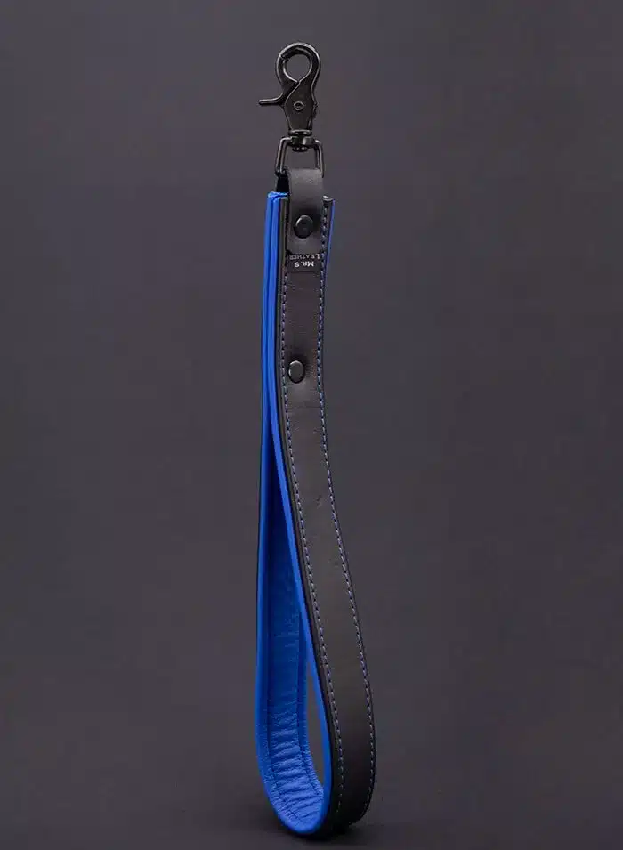 The Hardline Short Leash brings a fresh look the the Mr. S Leather arsenal – bold stitching with sleek black hardware and sturdy leather piped with a splash of color will make sure your sub and/or pup knows you mean business.