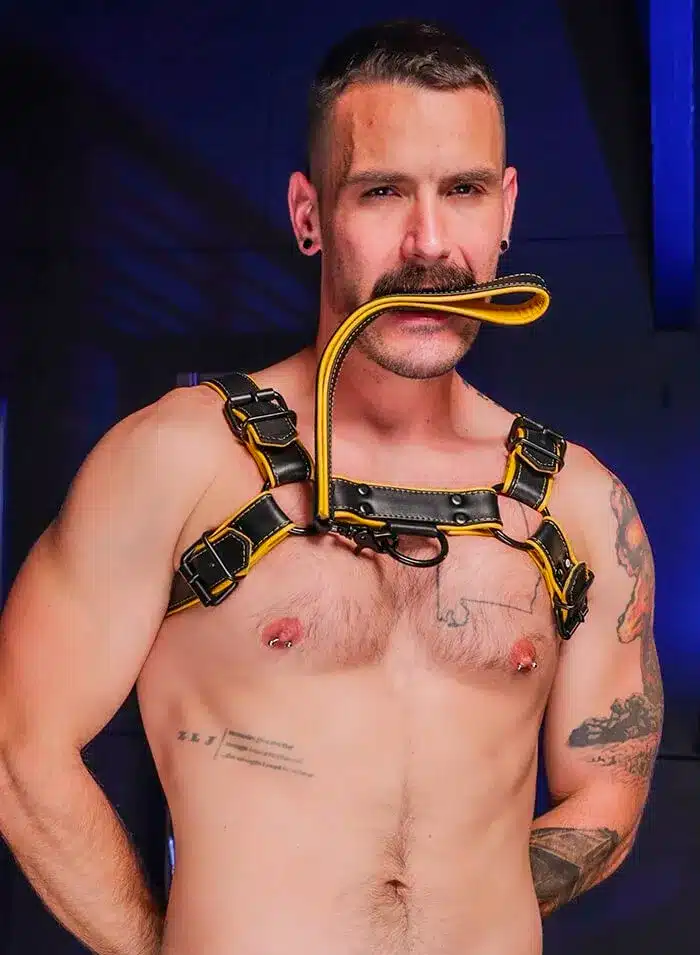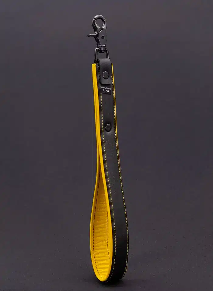 The Hardline Short Leash brings a fresh look the the Mr. S Leather arsenal – bold stitching with sleek black hardware and sturdy leather piped with a splash of color will make sure your sub and/or pup knows you mean business.