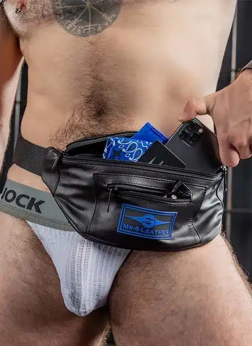 When you want to have everything right by your side, the Mr. S Leather Hip Holster gives you all the space you need for a fun night out. Multiple zipper pockets let you keep your phone, cash, cards, lube and poppers safe without compromising your style. A logo patch sits front and center and comes in all black, blue or red. Wear it around your hip or sling it diagonally across your chest – either way you’ll have a place to store your things when you’re butt-naked at a street fair, bar, or dance party.