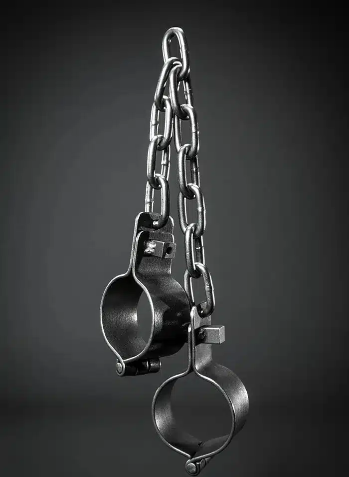 These close fitting irons are linked together with a 12″ long heavy-duty welded chain.