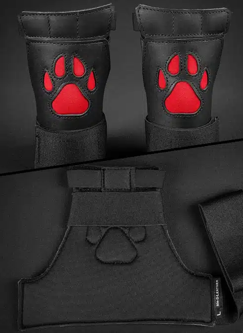 What makes these gloves great is you still have use of your hands so you can go from pup mode to holding a drink without taking these gloves off. The front of these gloves are crafted from a heavy leather with neoprene padding on the underside. This makes them super comfortable especially when you’re on all fours. It has a paw cutout visible on the front that comes in the same 16 stock colors as the Neoprene Puppy Hoods and the Neoprene K9 Hoods. Match your new Open Paw Puppy Gloves directly to your hood or mix it up for a fun look.