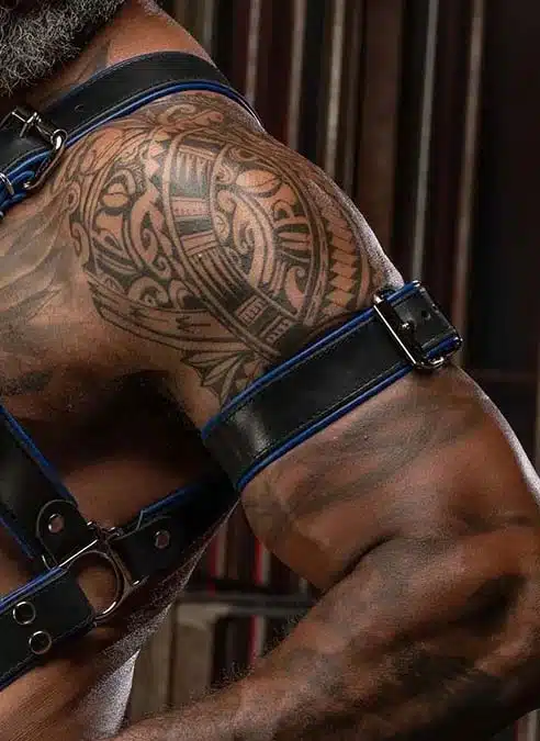 The Piped Trojan Armband is a great new accessory that will look great with your Trojan Harness and Jockstrap. This 1 ½” thick latigo strap, that has a soft backing made from garment leather, closes with a heavy-duty roller buckle and has three levels of adjustability for a perfect fit. Don’t worry if you don’t have a Trojan combo, this armband will look great with any of your other gear too!