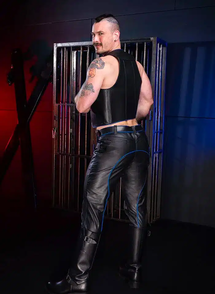 Each Uniform Pant is handmade with a lighter-than-normal pant leather that will hug your legs like a second skin and break in so well you’ll forget you’re wearing them. It’s built with four welt pockets to keep your silhouette sleek and sexy, while providing plenty of pockets for your necessities. The saddle has been lengthened to the ankle to highlight and accentuate your quads, calves, and butt and will go with any of your favorite Mr. S Leather gear. The hem has been tapered to a close fit with a zipper closure, so it will fit nicely inside your favorite pair of pull-on boots or hi-tops.