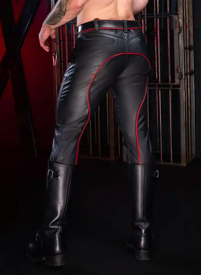 Each Uniform Pant is handmade with a lighter-than-normal pant leather that will hug your legs like a second skin and break in so well you’ll forget you’re wearing them. It’s built with four welt pockets to keep your silhouette sleek and sexy, while providing plenty of pockets for your necessities. The saddle has been lengthened to the ankle to highlight and accentuate your quads, calves, and butt and will go with any of your favorite Mr. S Leather gear. The hem has been tapered to a close fit with a zipper closure, so it will fit nicely inside your favorite pair of pull-on boots or hi-tops.