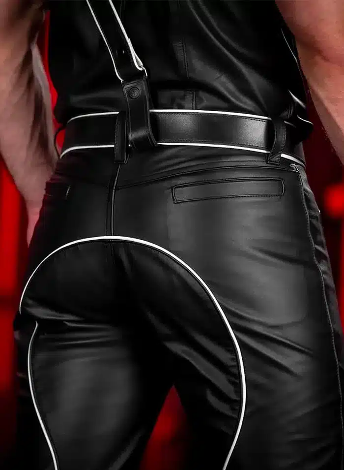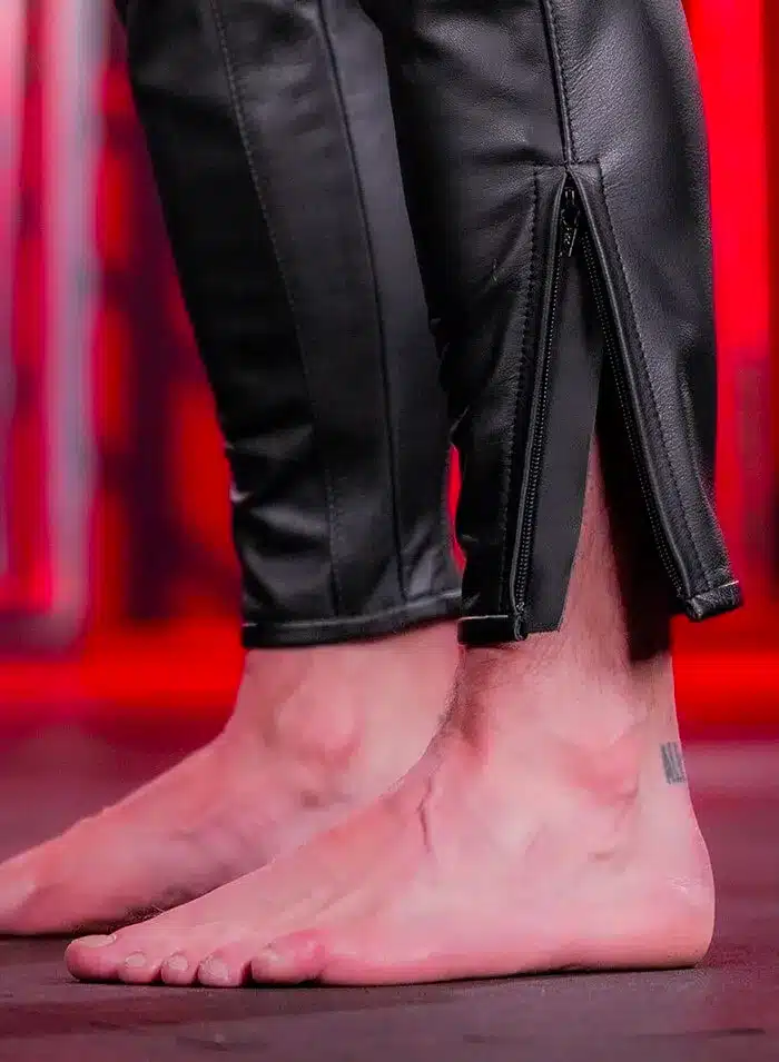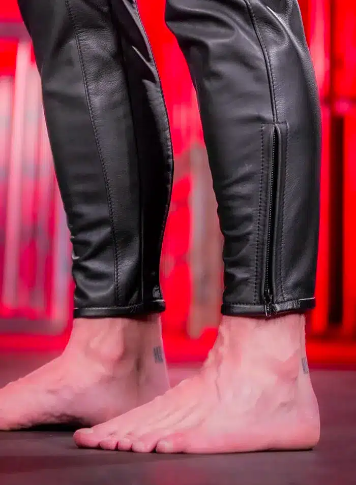Each Uniform Pant is handmade with a lighter-than-normal pant leather that will hug your legs like a second skin and break in so well you’ll forget you’re wearing them. It’s built with four welt pockets to keep your silhouette sleek and sexy, while providing plenty of pockets for your necessities. The saddle has been lengthened to the ankle to highlight and accentuate your quads, calves, and butt and will go with any of your favorite Mr. S Leather gear. The hem has been tapered to a close fit with a zipper closure, so it will fit nicely inside your favorite pair of pull-on boots or hi-tops.