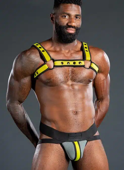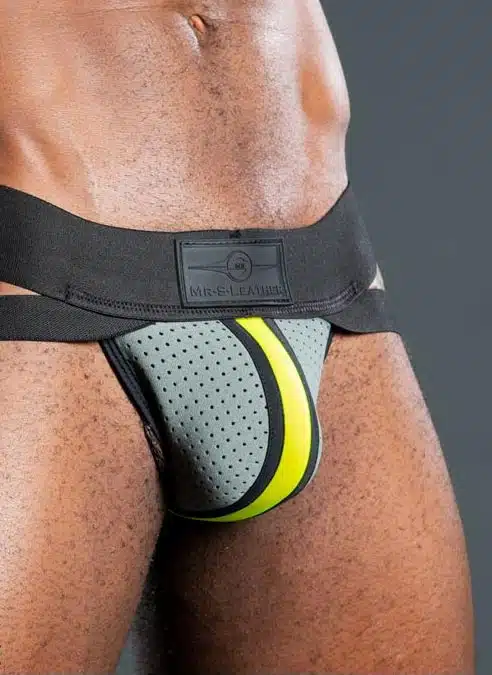 This bulge enhancing jockstrap is made from a breathable perforated neoprene. Mr. S modernized the traditional jockstrap style by switching up the starting point of the buttstraps for a look that could kill. This sexy jock is great for a night of fucking in the back room or dancing to your favorite DJ’s beats. Mr. S silicone patch on the front lets the boys know how you play. Two front D-rings give you a spot to clip your favorite body harness.