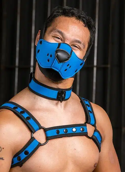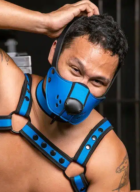 This Muzzle Head Harness keeps your head open so you won’t overheat. It’s fully compatible with the Mr. S puppy muzzles that have the plastic snaps, including those that came with your puppy hood! Strap this head harness on, pop on one of your favorite muzzles, and go for a swim or stick your head out the window to let the breeze catch your fur. You’ll be in puppy head space in no time.