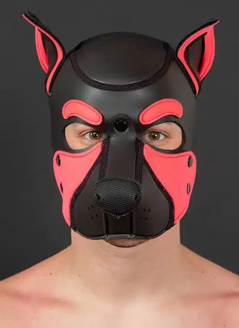 Introducing the Frisky Pup Hood! This puppy hood has been designed with more mischievous puppies in mind; forgone is the standard chin piece in favor of an elastic band. This means you naughty puppies can get a full range of motion with your jaw! Go rooting around in daddy’s pants for a bone, sip a drink at the bar while you take a break from your mosh, or bury your snout in a perky butt. You’ll have full access to get as frisky as you want.