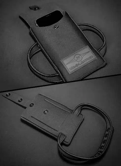 This holster has one pocket that secures with a snap for that really important stuff. A second open pocket was designed as a storage spot for your phone. It keeps it secure and allows you to access it easily when you want. Additionally, in the slip pocket is a card pocket that will work great for your ID and credit card. A double set of snaps lets you securely attach this to your jockstrap waistband or belt.