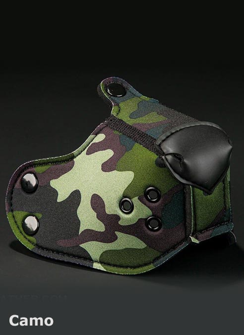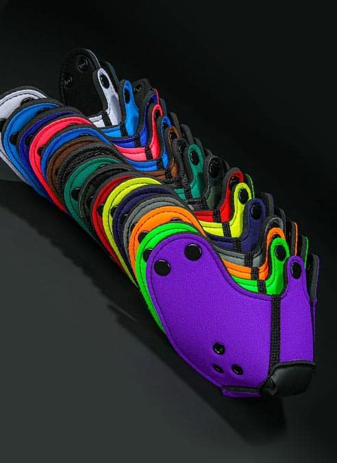 These muzzles are styled after the Neoprene K9 Hood, but are also fully compatible with the classic Mr. S Neoprene Puppy Hood. Mix and match depending on your mood!