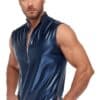 The Blue metallic sleeveless shirt from NEK gives you a tight and slick sensation. Wear this fitted reflective muscle shirt with the zipper up or down to show off as much or as little as you like!